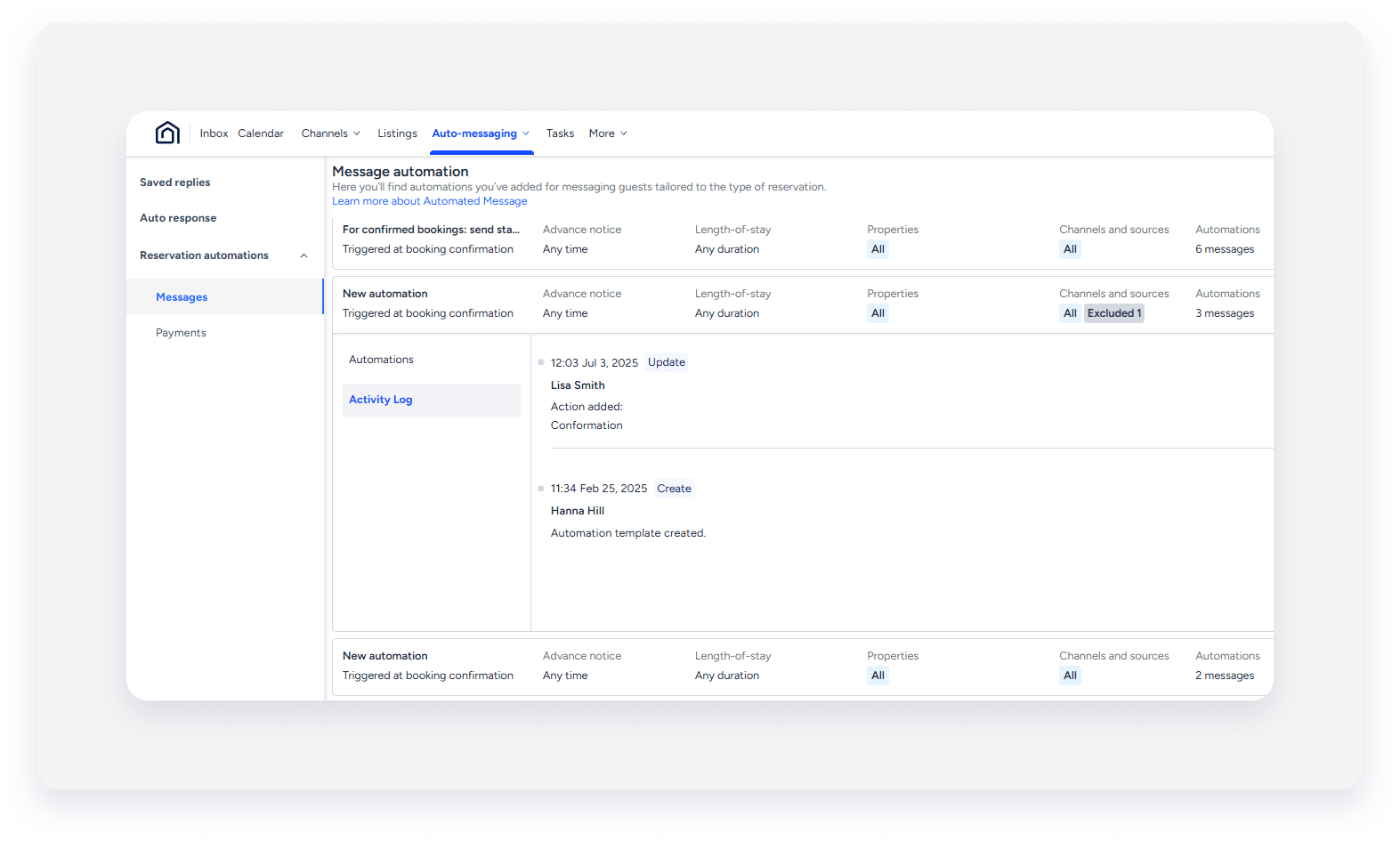 Guesty provides tools to help you track changes made over time. Use the activity log to review updates and keep full control over your automations.