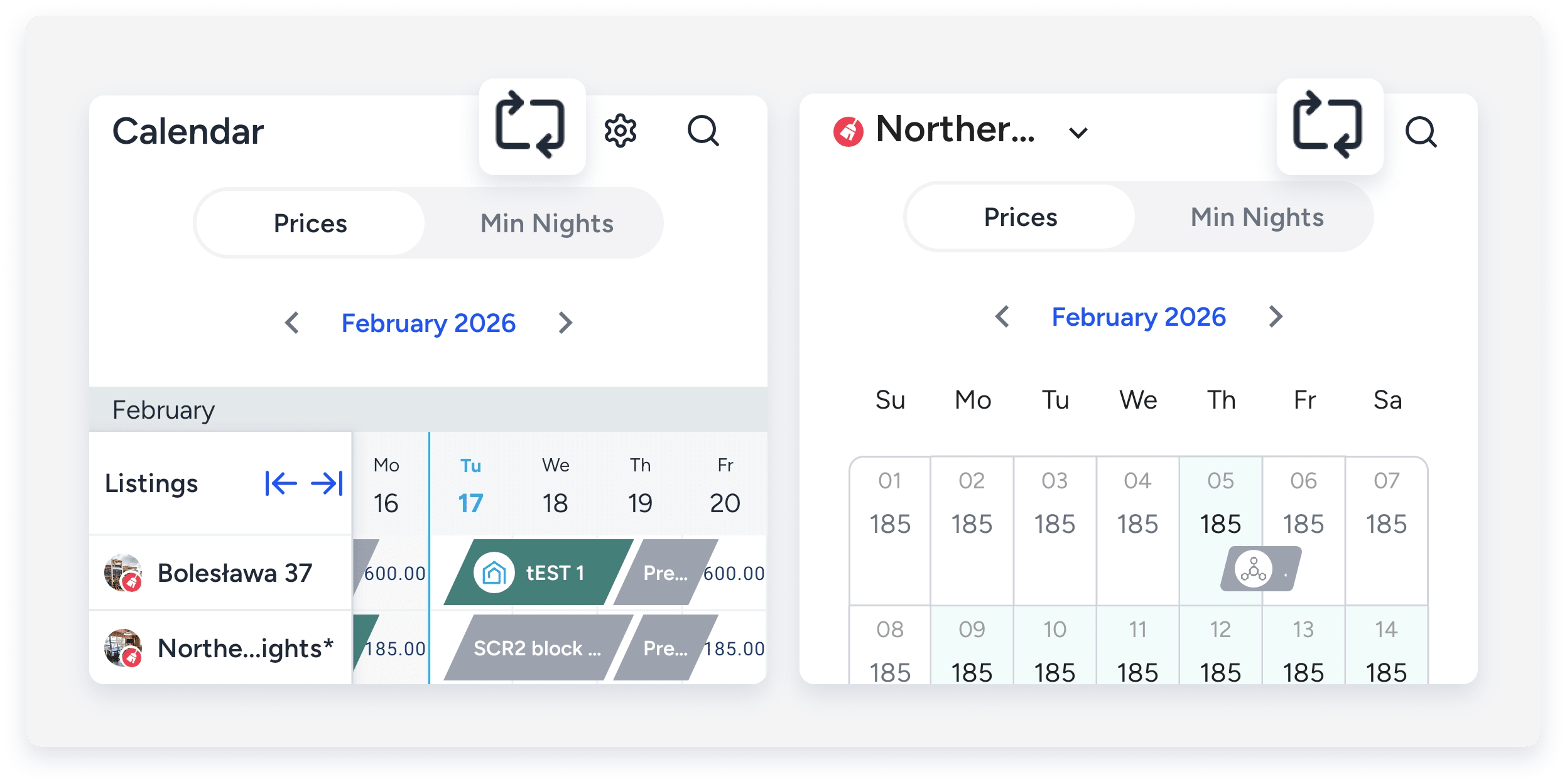 on the bottom menu. Switch to the Multi-Calendar to view availability for all listings.