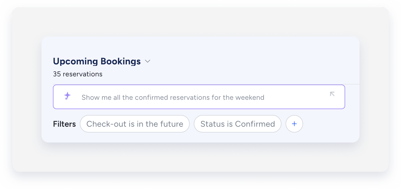 Describe the reservation report you want in everyday words to view suggested filters and columns that give you the information you need.